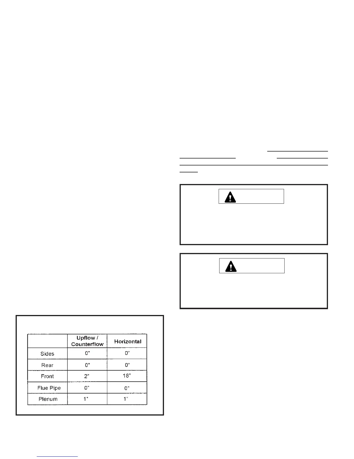 Refer to Table 1 for the minimum clearances to combustibles