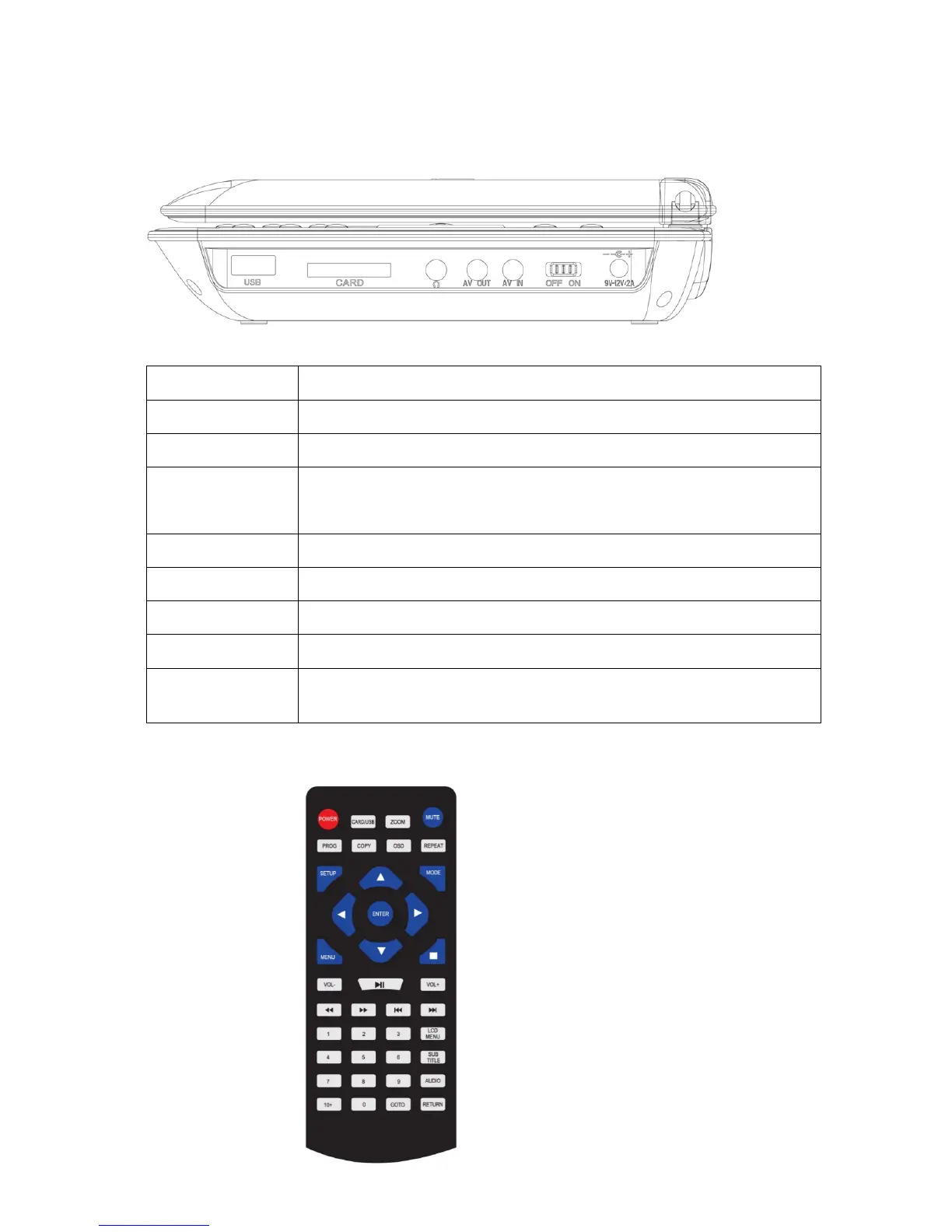 Lenoxx PDVD1500 - Side Panel; The Remote Control