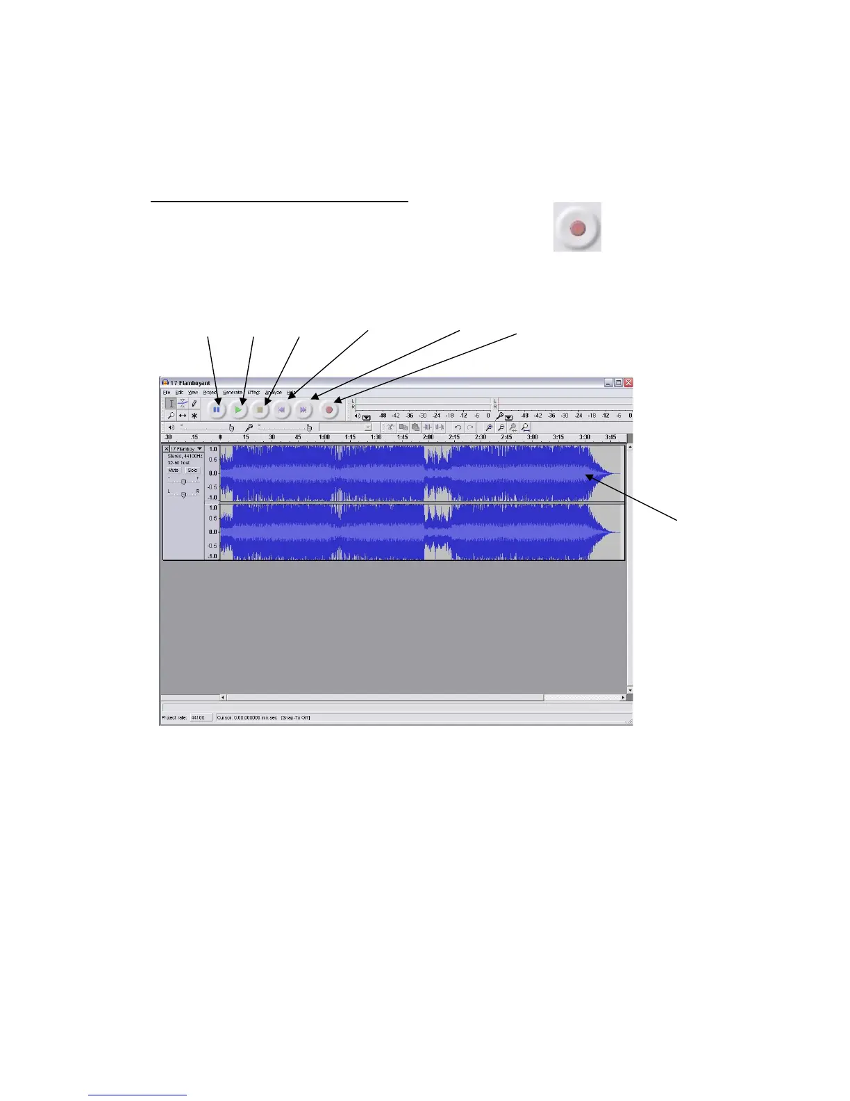 ●Once recorded use the Transport controls at the top of the screen to, Go to start, Play,