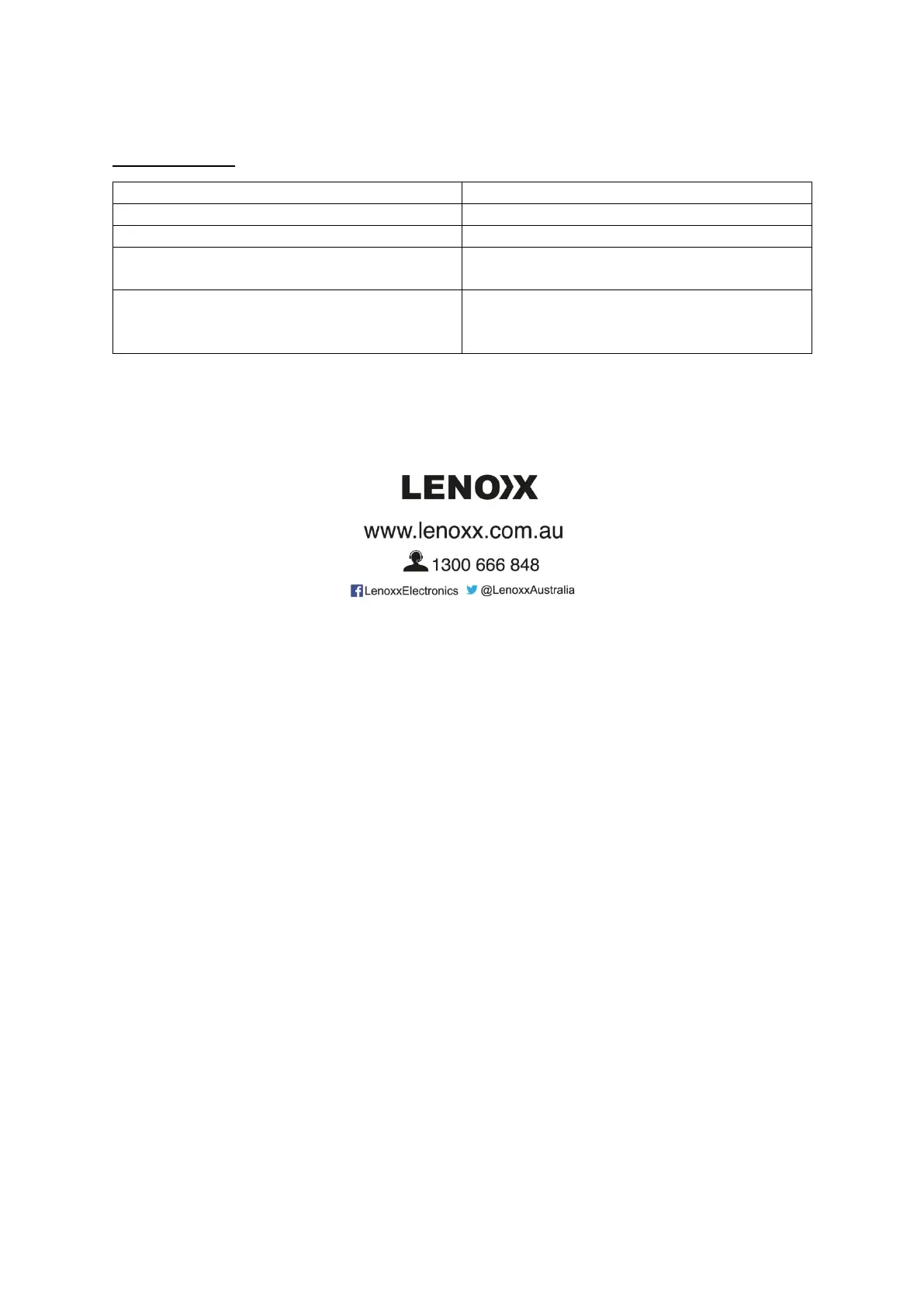 Lenoxx WC250 - Technical Info