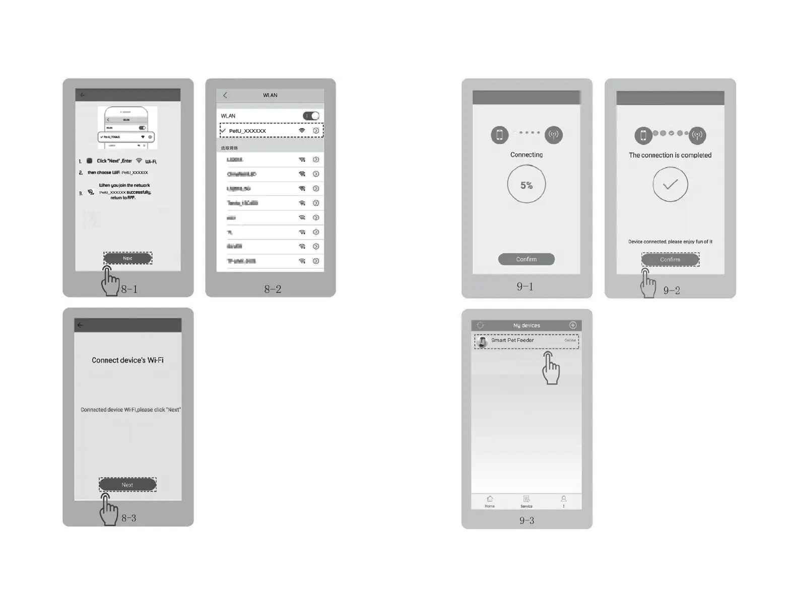 choose WiFi named “PetU_xxxxxx” and