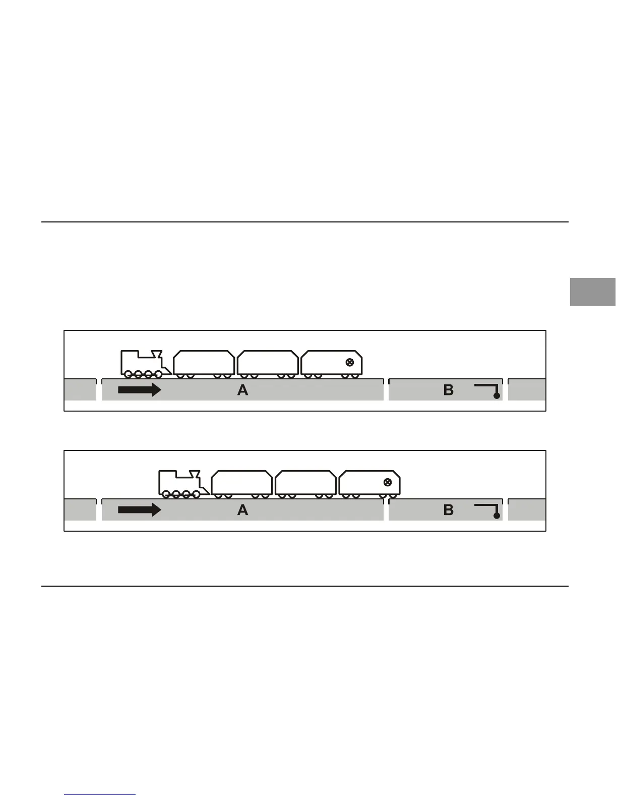 La voie précédant le signal est divisée en une section de marche normale (A) et une section de