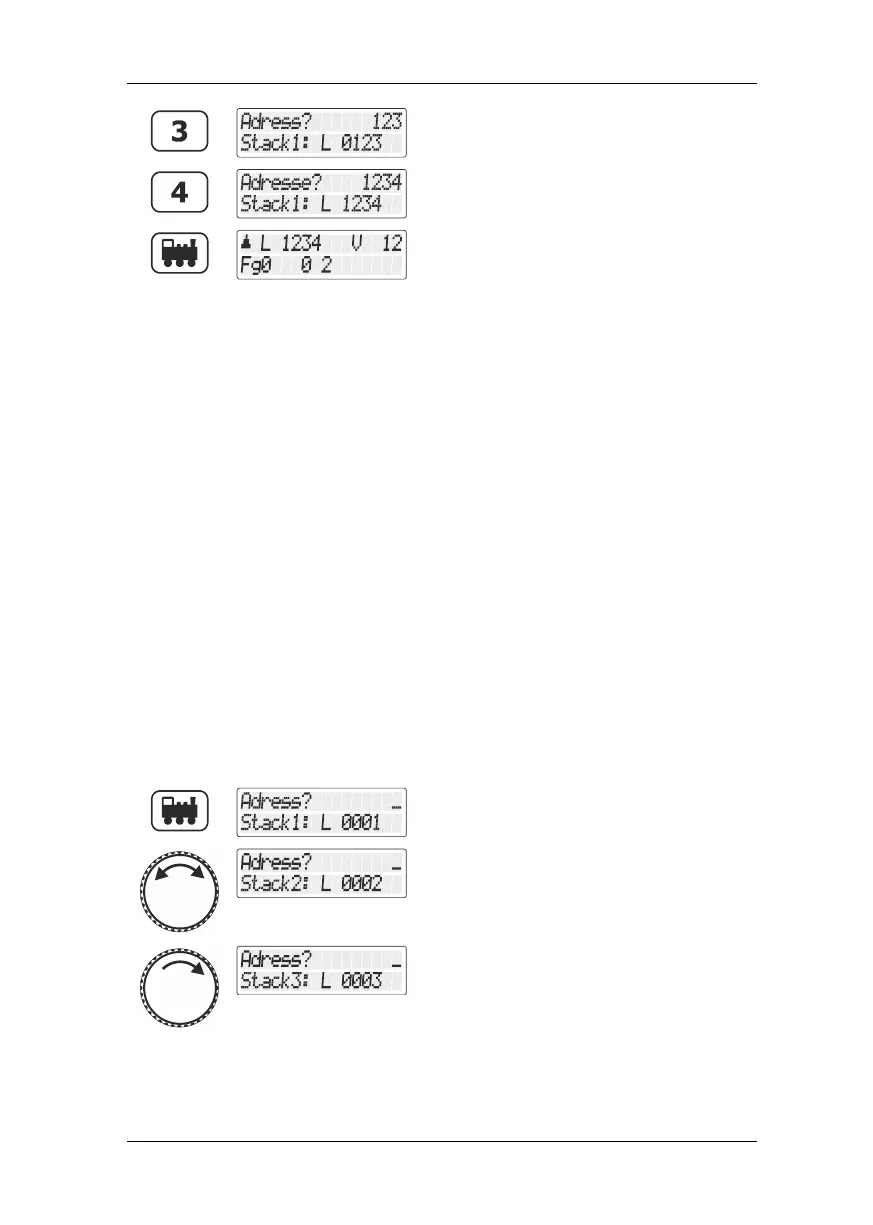 5.1.2 Choosing locomotive addresses from the “stack” of the