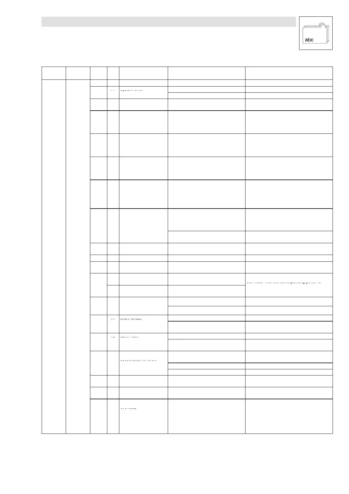 short-circuit Find reason for short-circuit; check motor cable