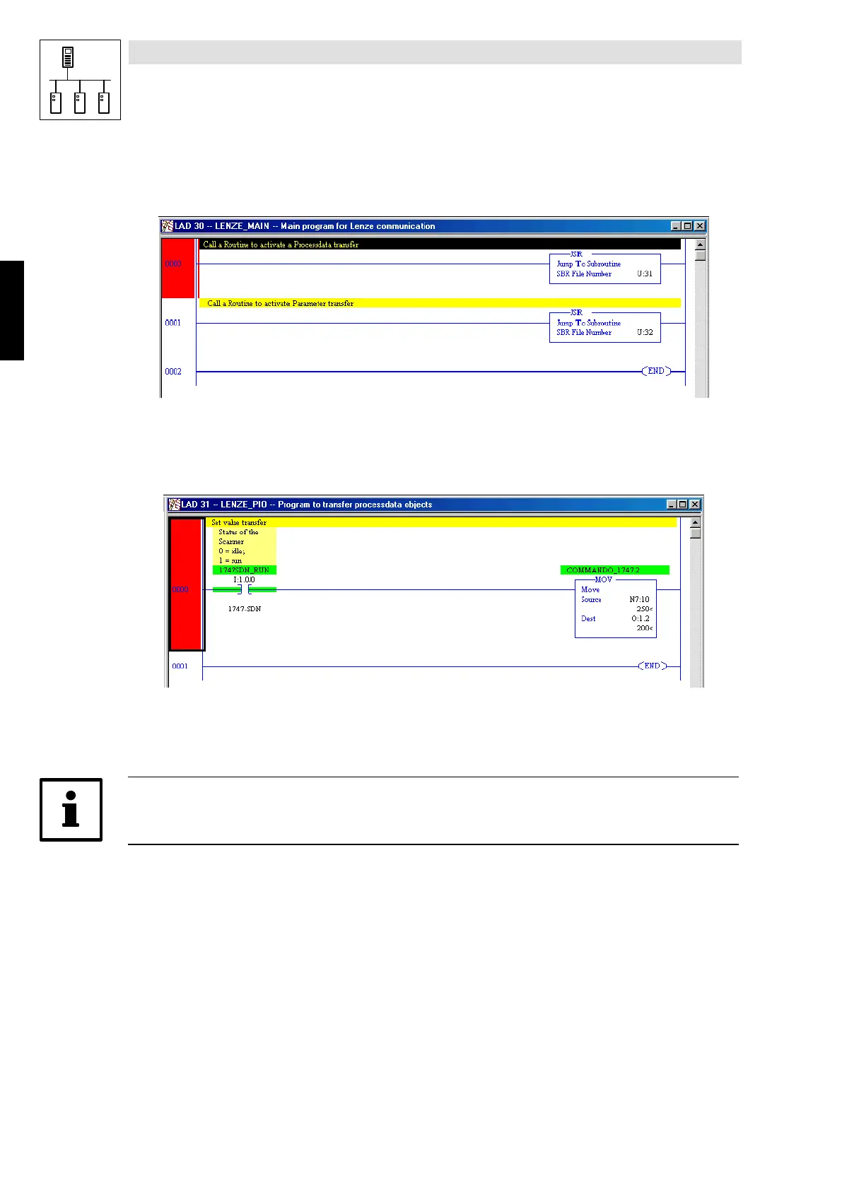 The example describes the writing of the speed setpoint to the 8200 vector frequency inverter.