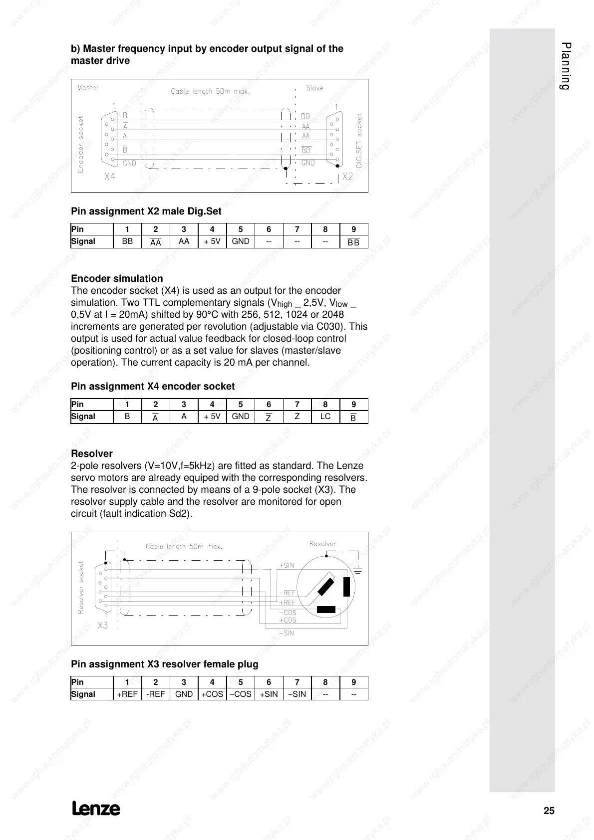 2-pole resolvers (V=10V,f=5kHz) are fitted as standard. The Lenze