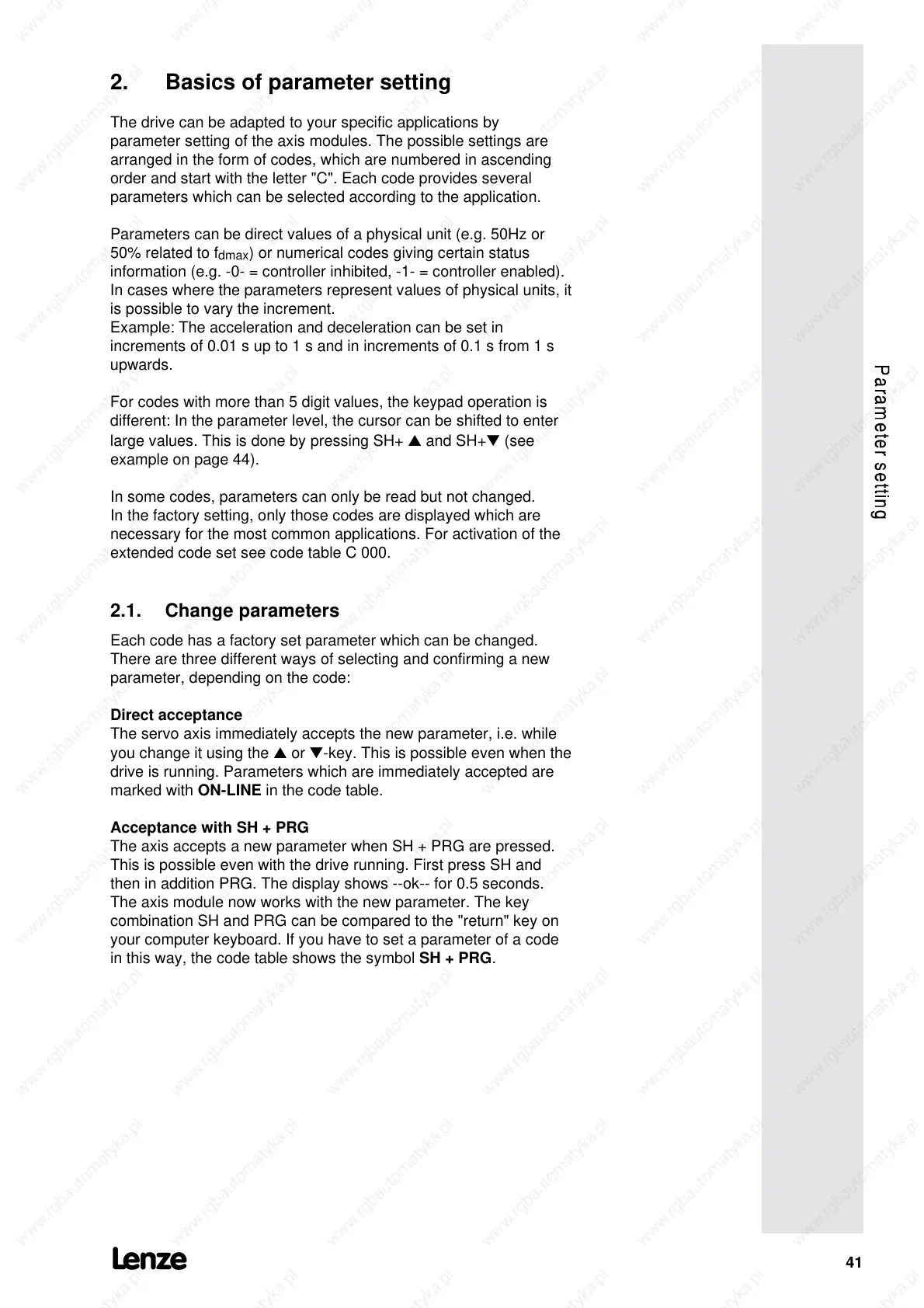 Parameters can be direct values of a physical unit (e.g. 50Hz or