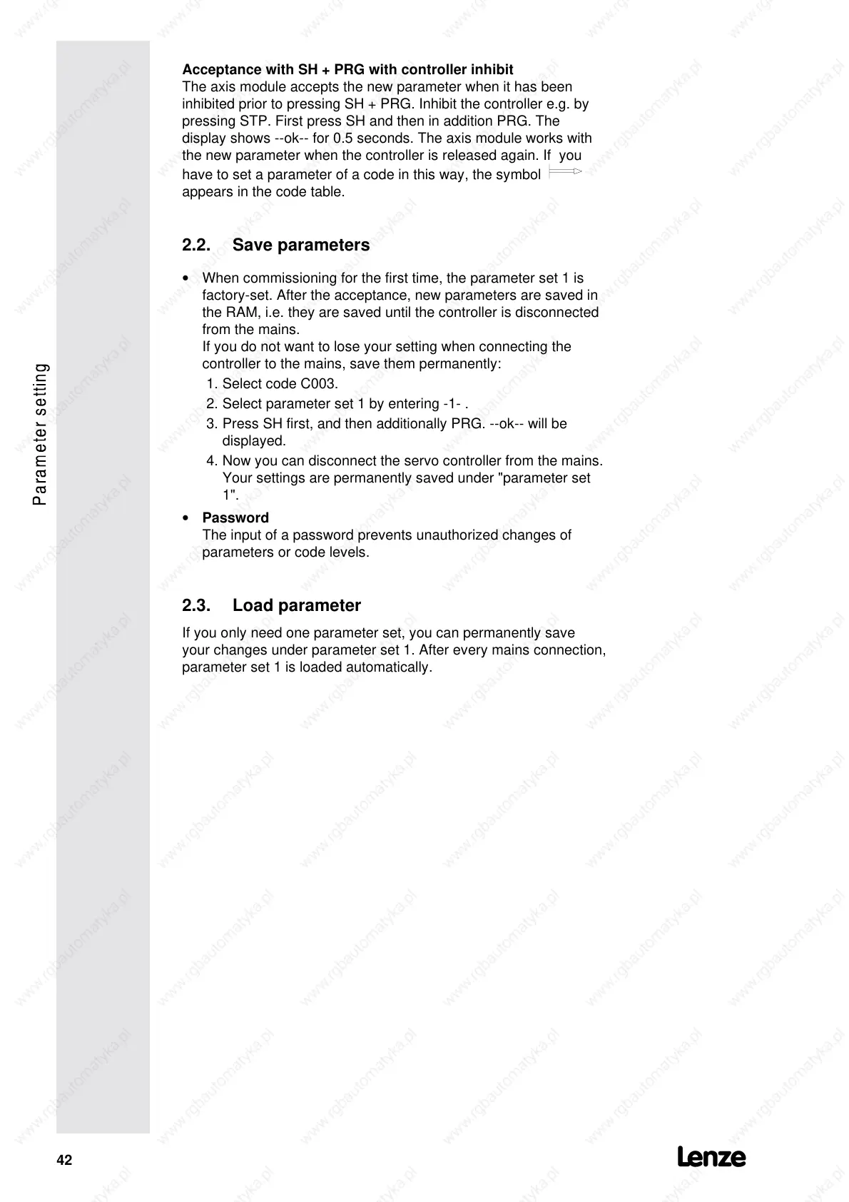 parameter set 1 is loaded automatically.