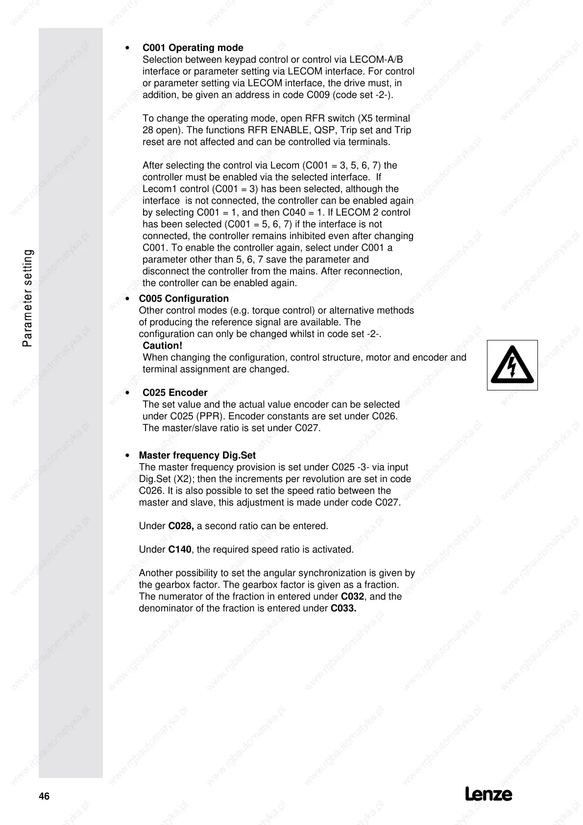 After selecting the control via Lecom (C001 = 3, 5, 6, 7) the