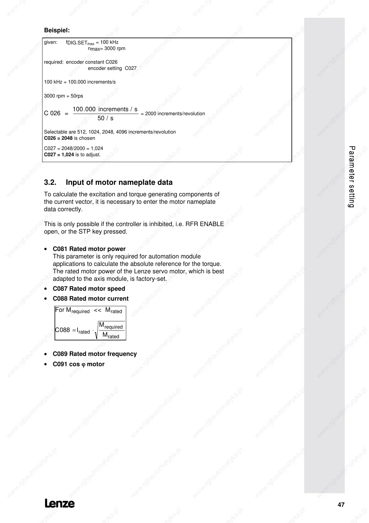 Selectable are 512, 1024, 2048, 4096 increments/revolution