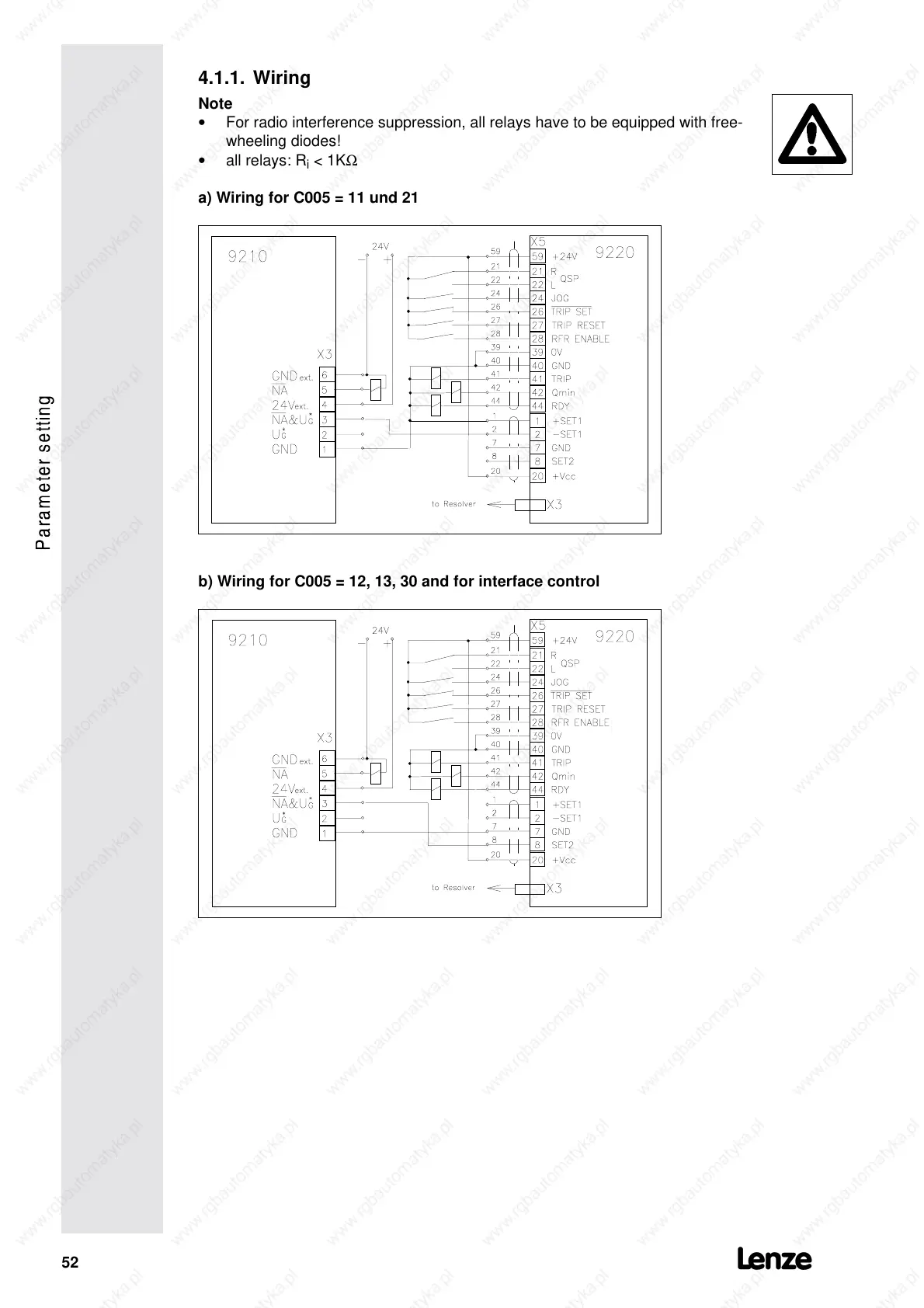 b) Wiring for C005 = 12, 13, 30 and for interface control