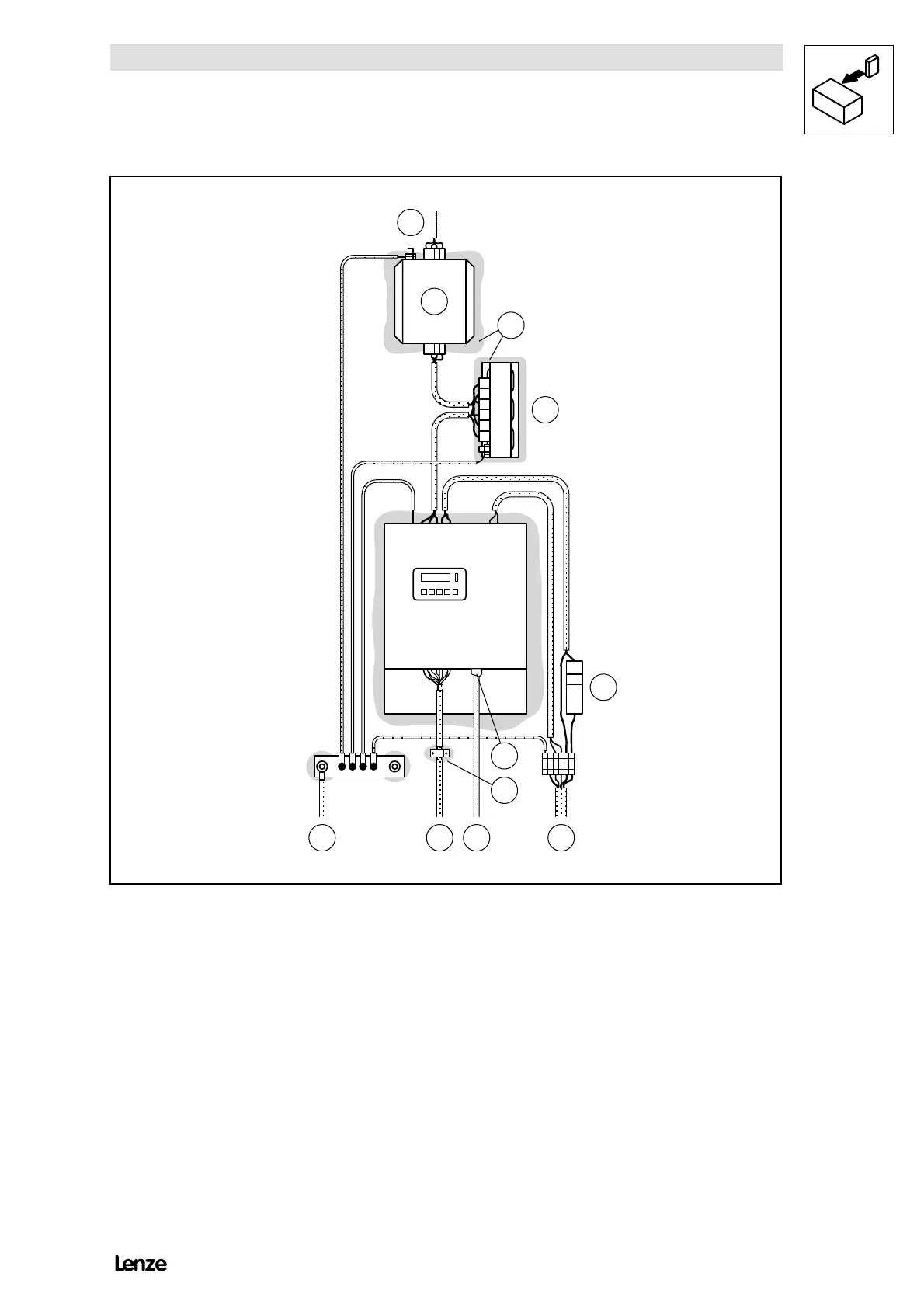 6 Metal plug-in casing connected to screen or Lenze system cable