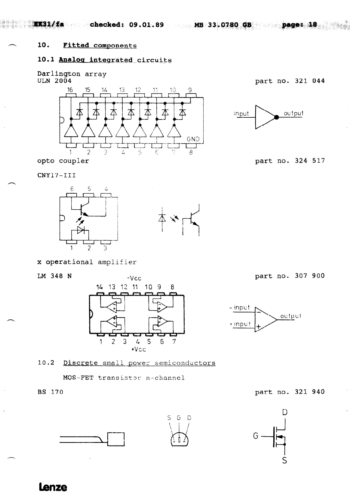 Lenze 630 Series - 10 Fitted Components; Analog Integrated Circuits; Discrete Small Power Semiconductors