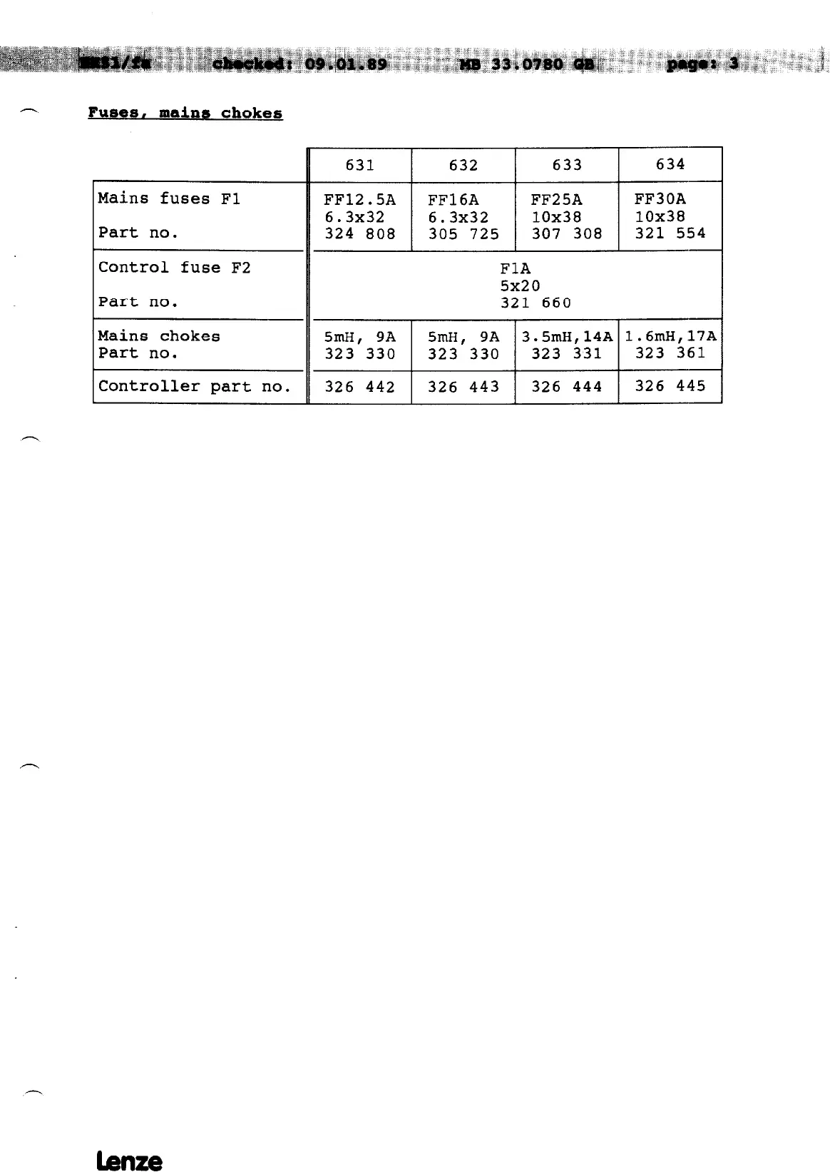 Lenze 630 Series - Fuses, Mains Chokes