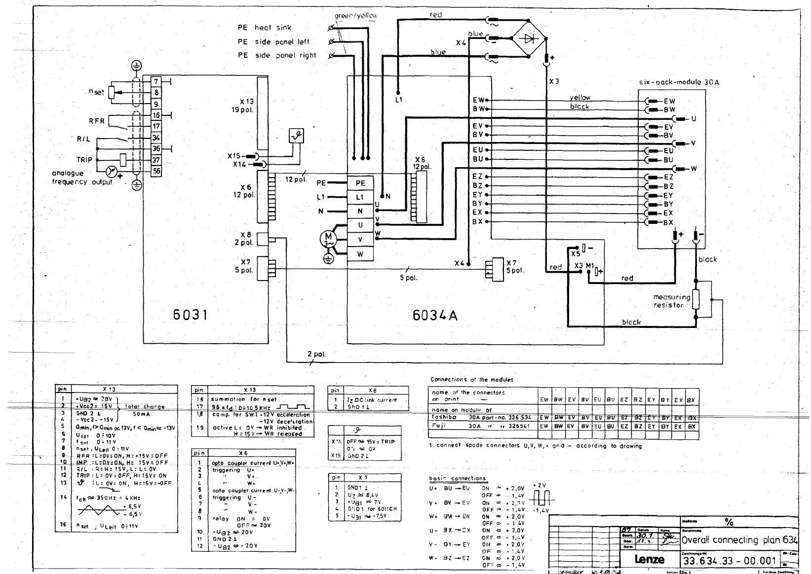 Lenze 633 - Overall Connecting Plan 634; Module Interconnections; Connector Labeling; Basic Connection Configurations