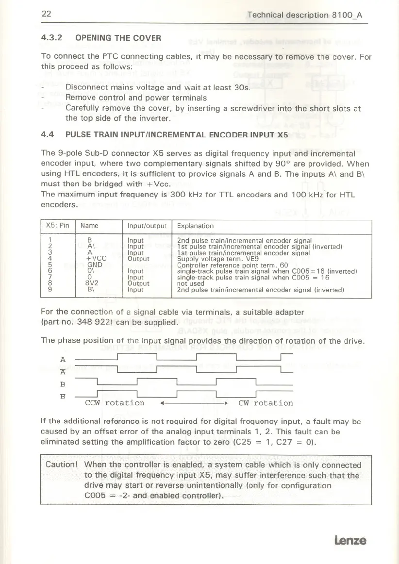 The 9-pole Sub-D connector X5 serves as digital frequency input and incremental