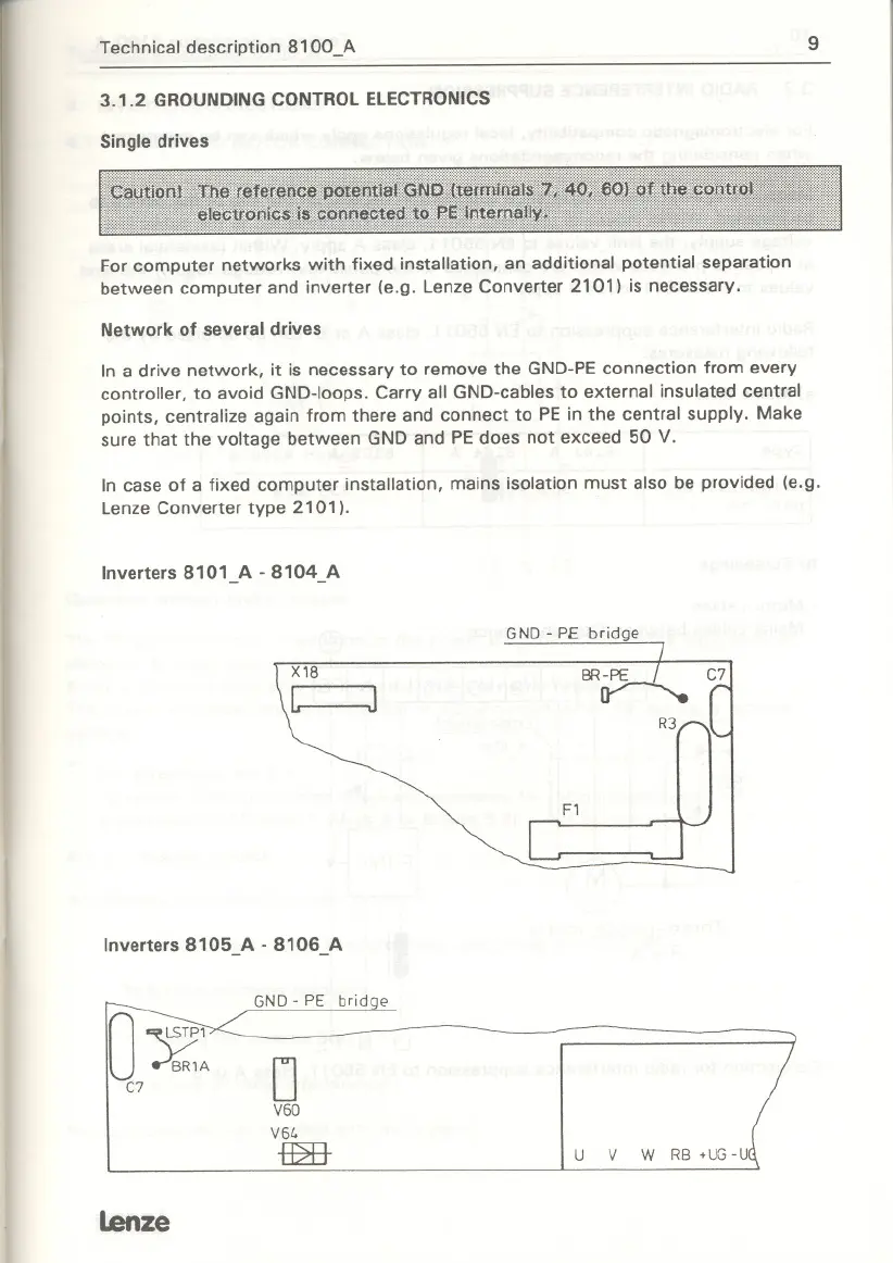 In a drive network, it is necessary to remove the GND-PE connection from every