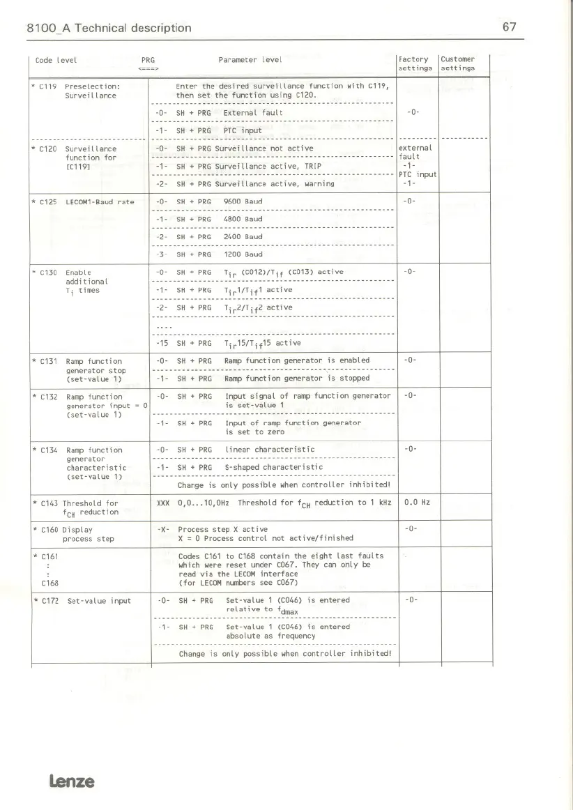 Code leve l PRG Parameter level