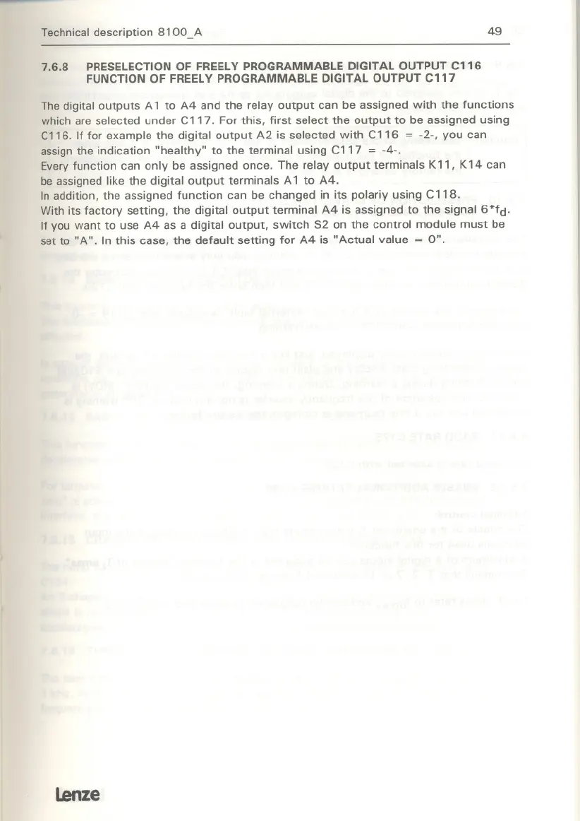 7.6.8 PRESELECTION OF FREELY PROGRAMMABLE DIGITAL OUTPUT C116