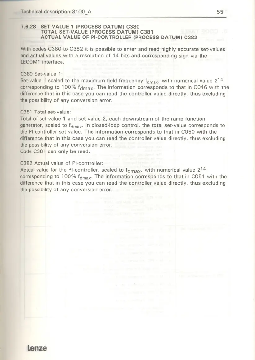 With codes C380 to C382 it is possible to enter and read highly accurate set-values