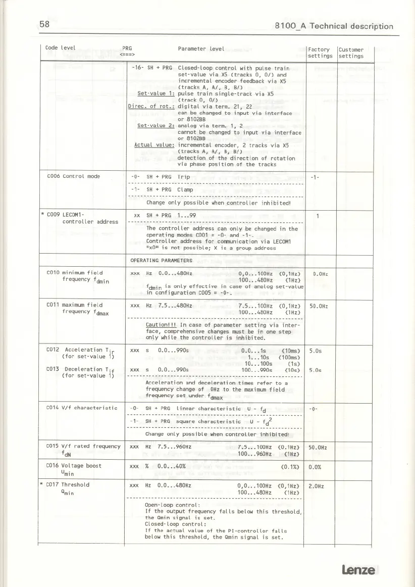 .C017 Threshold xxx Hz 0.0. ..480Hz 0,0. ..100Hz {O,IHz} 2.0Hz