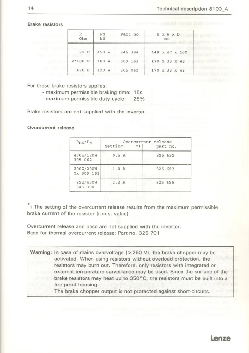 brake resistors may heat up to 350°C, the resistors must be built into a