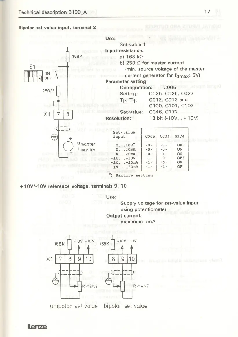 Bipolar set-value input. terminal 8