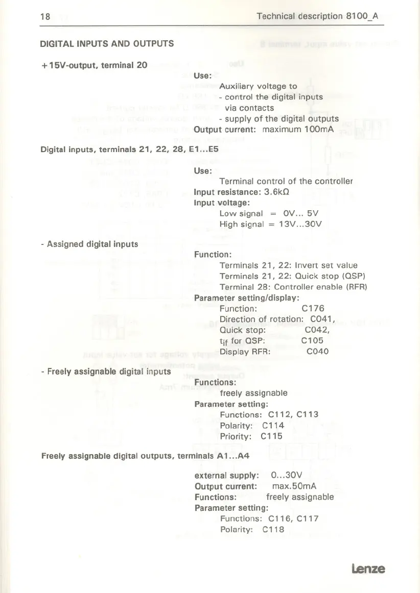 Digital inputs, terminals 21, 22, 28, E1...E5