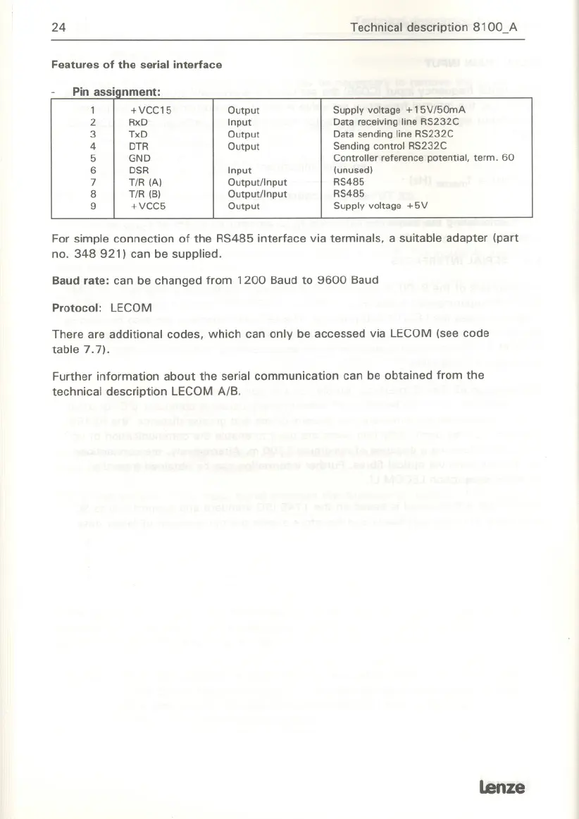 Baud rate: can be changed from 1200 Baud to 9600 Baud