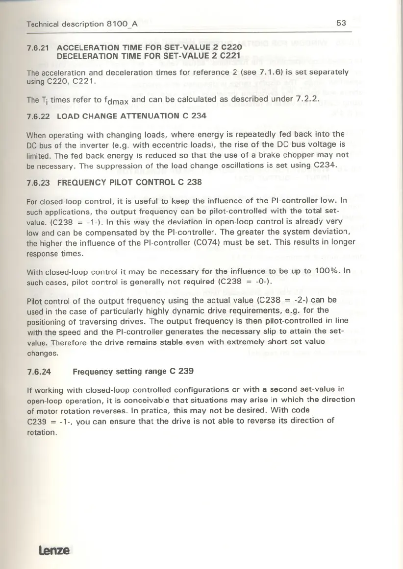 be necessary. The suppression of the load change oscillations is set using C234.