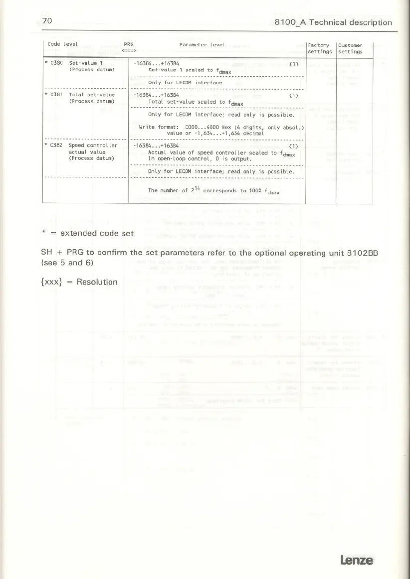 SH + PRG to contirm the set parameters reter to the optional operating unit 810288