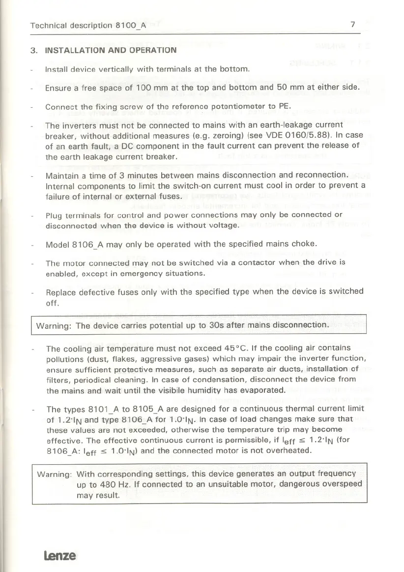 breaker, without additional measures (e.g. zeroing) (see VDE0160/5.88). In case