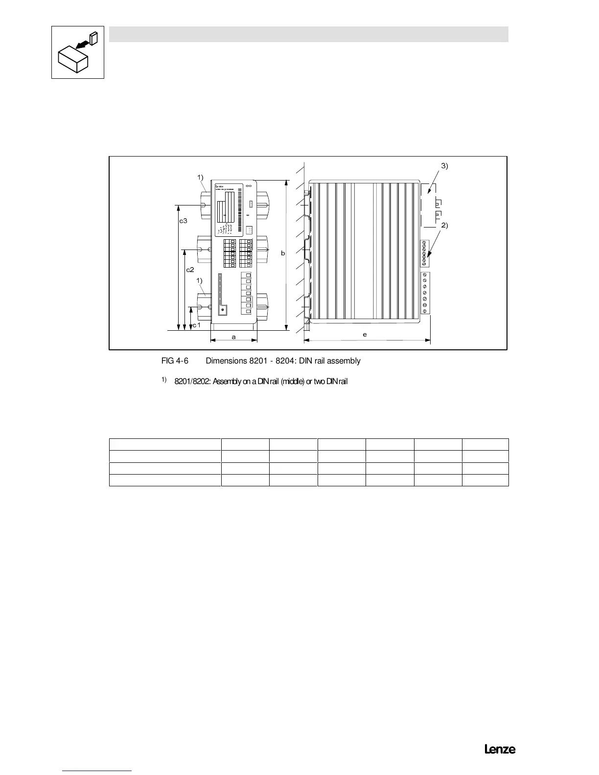 FIG 4-6 Dimensions 8201 - 8204: DIN rail assembly