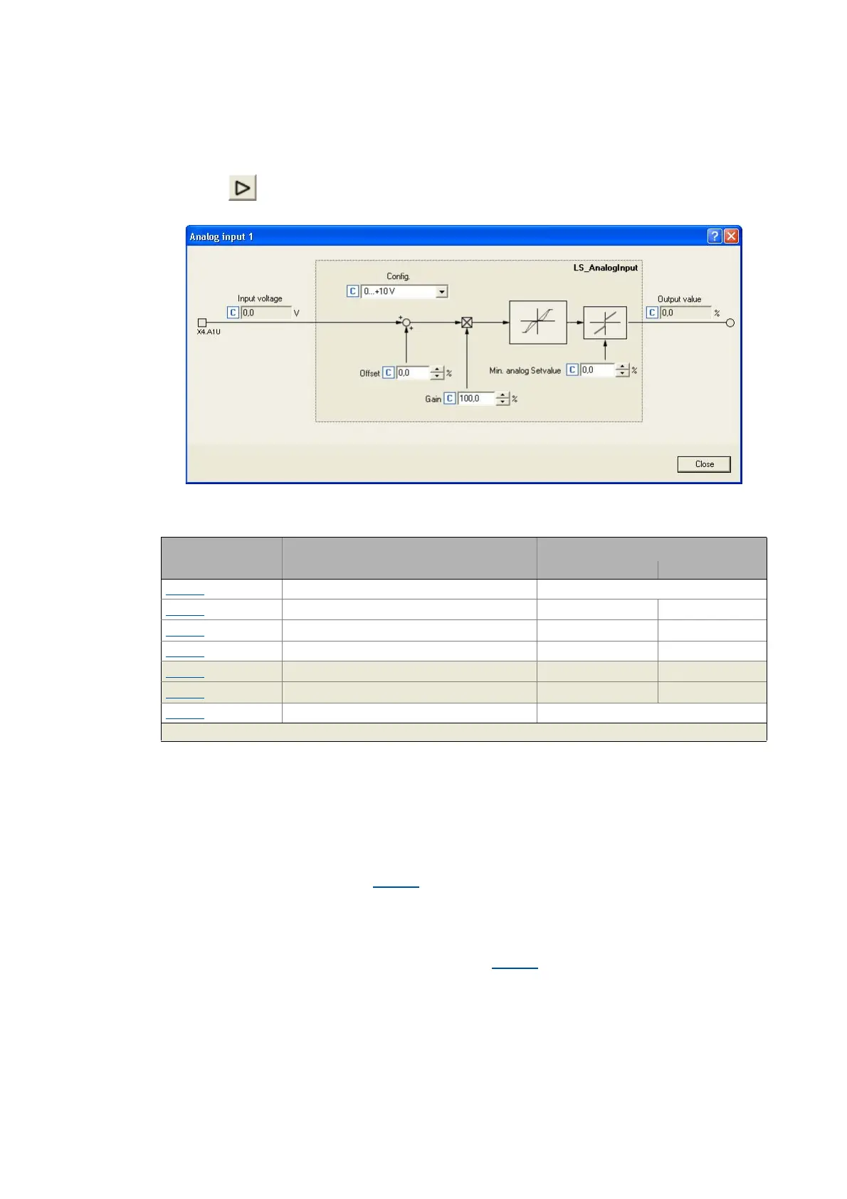 In the Lenze setting, a voltage signal in the range 0 ... +10 V is evaluated via the analog input termi-