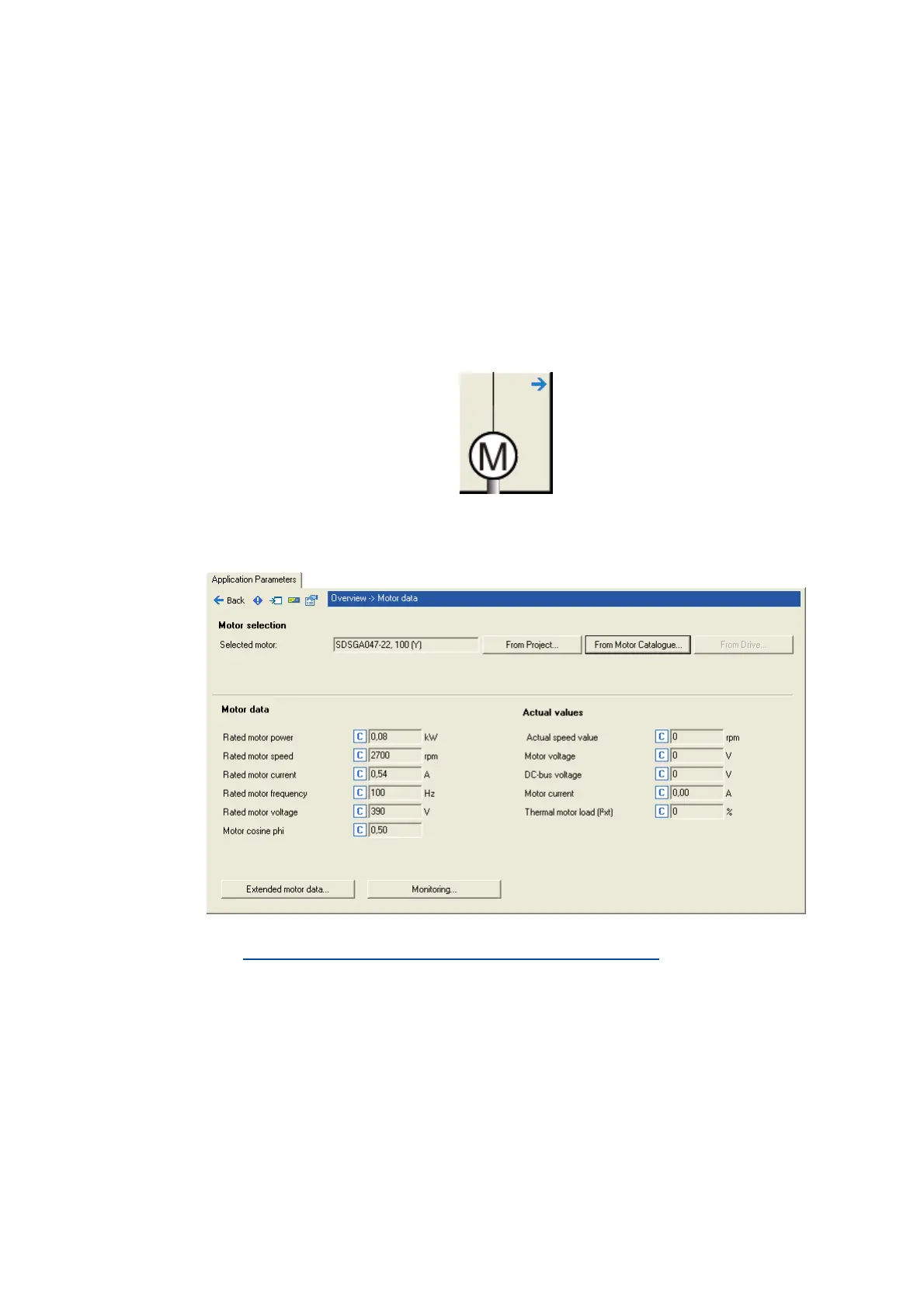 •Via the from Motor Catalogue button, the motor catalogue can be opened to select another mo-