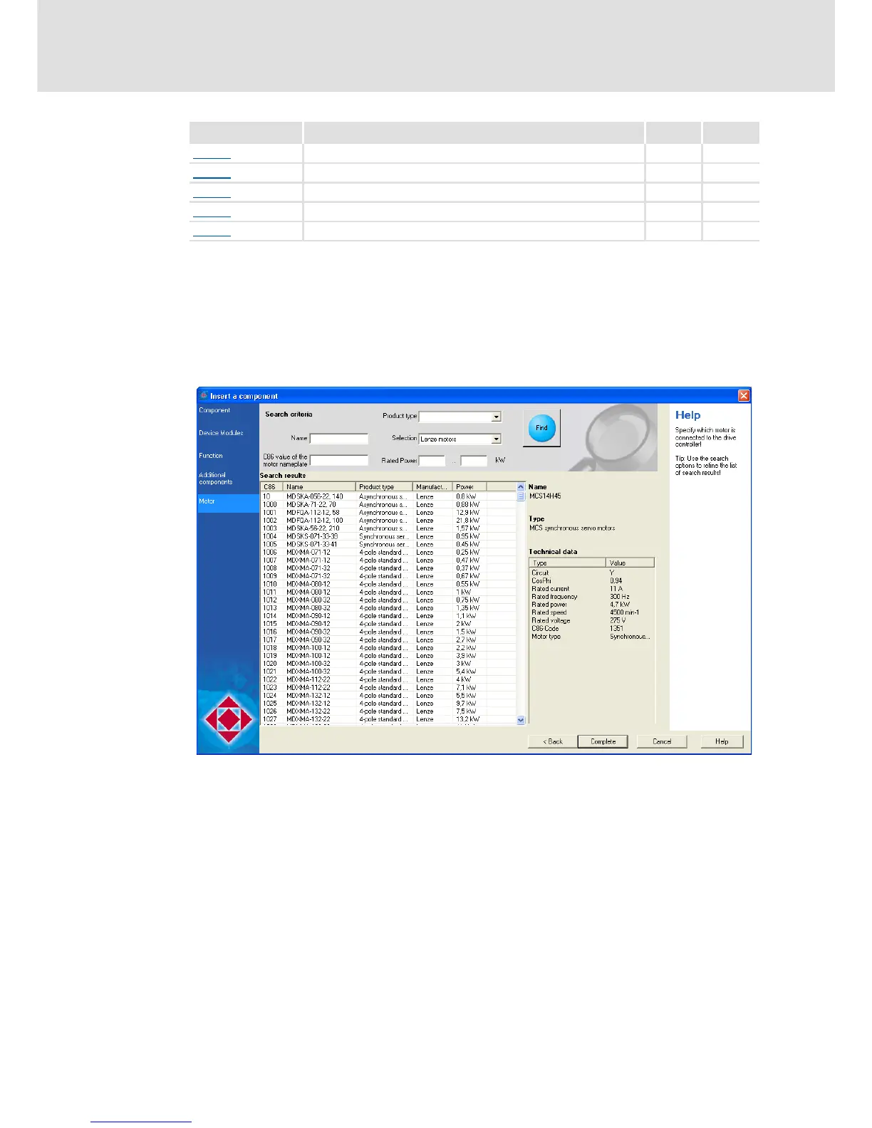 click the From motor catalogue... button to also reach the motor catalogue for the