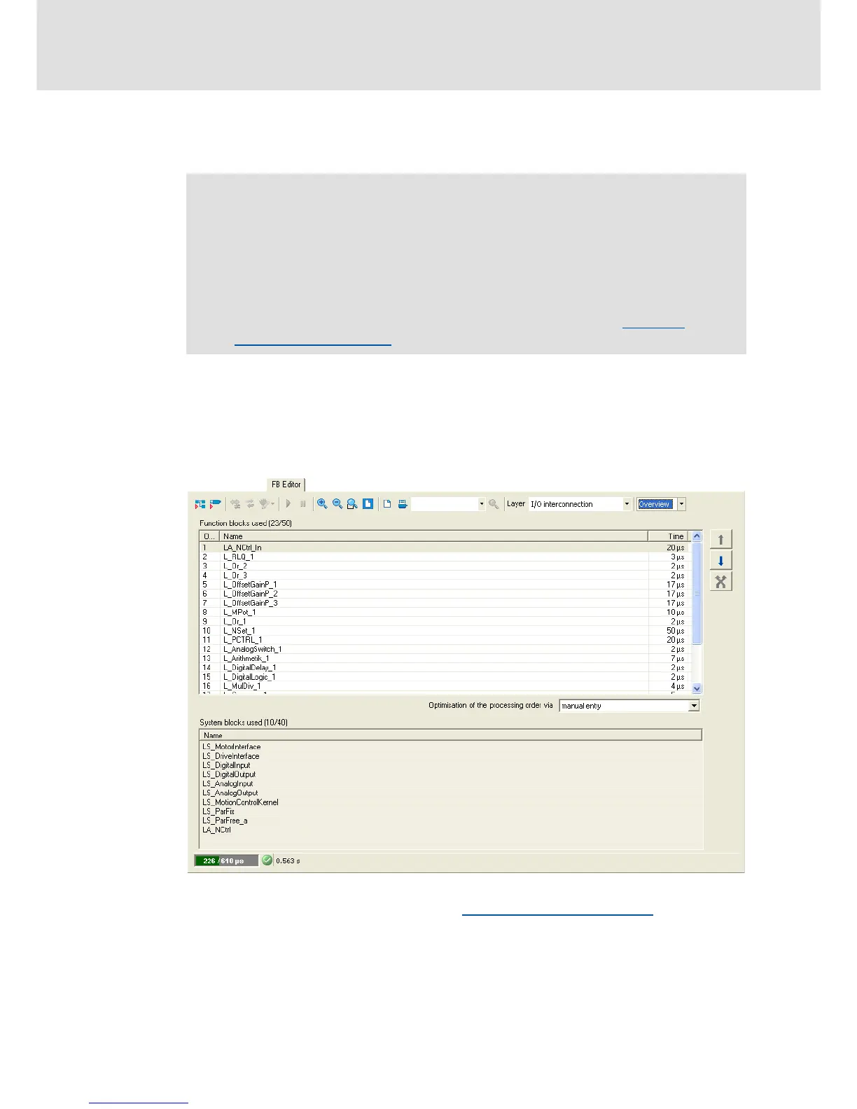 The processing order of the function blocks can be optimised manually or according to