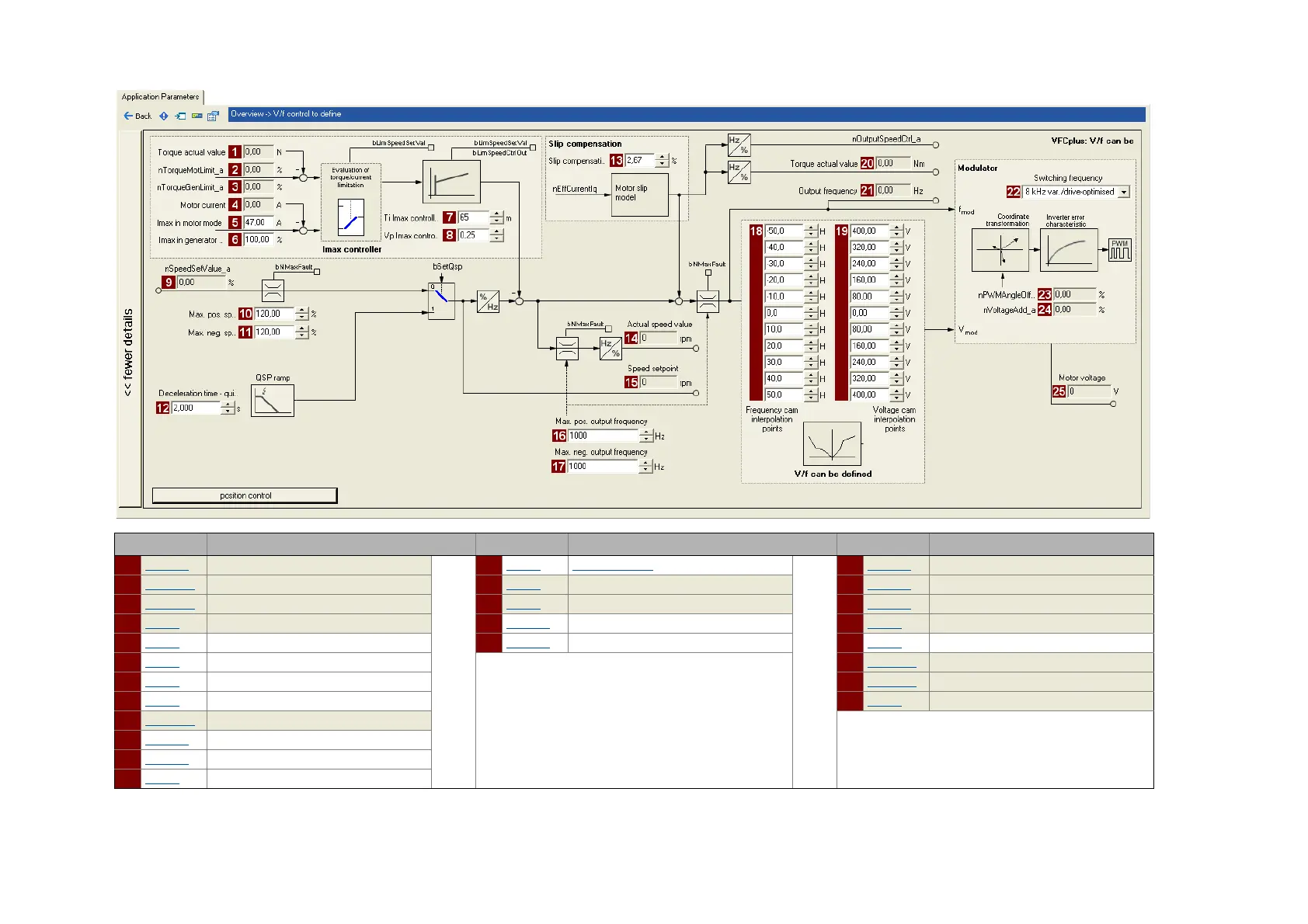 2 C00830/29 Limitation of torque in motor mode 14 C00051 Actual speed value 19 C00968/x Voltage interpol. points