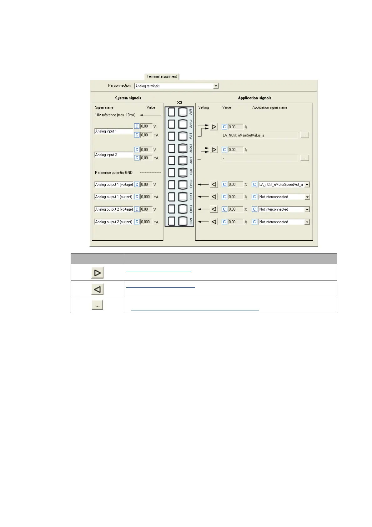 Open the parameterising dialog for assigning application inputs to the analog input.