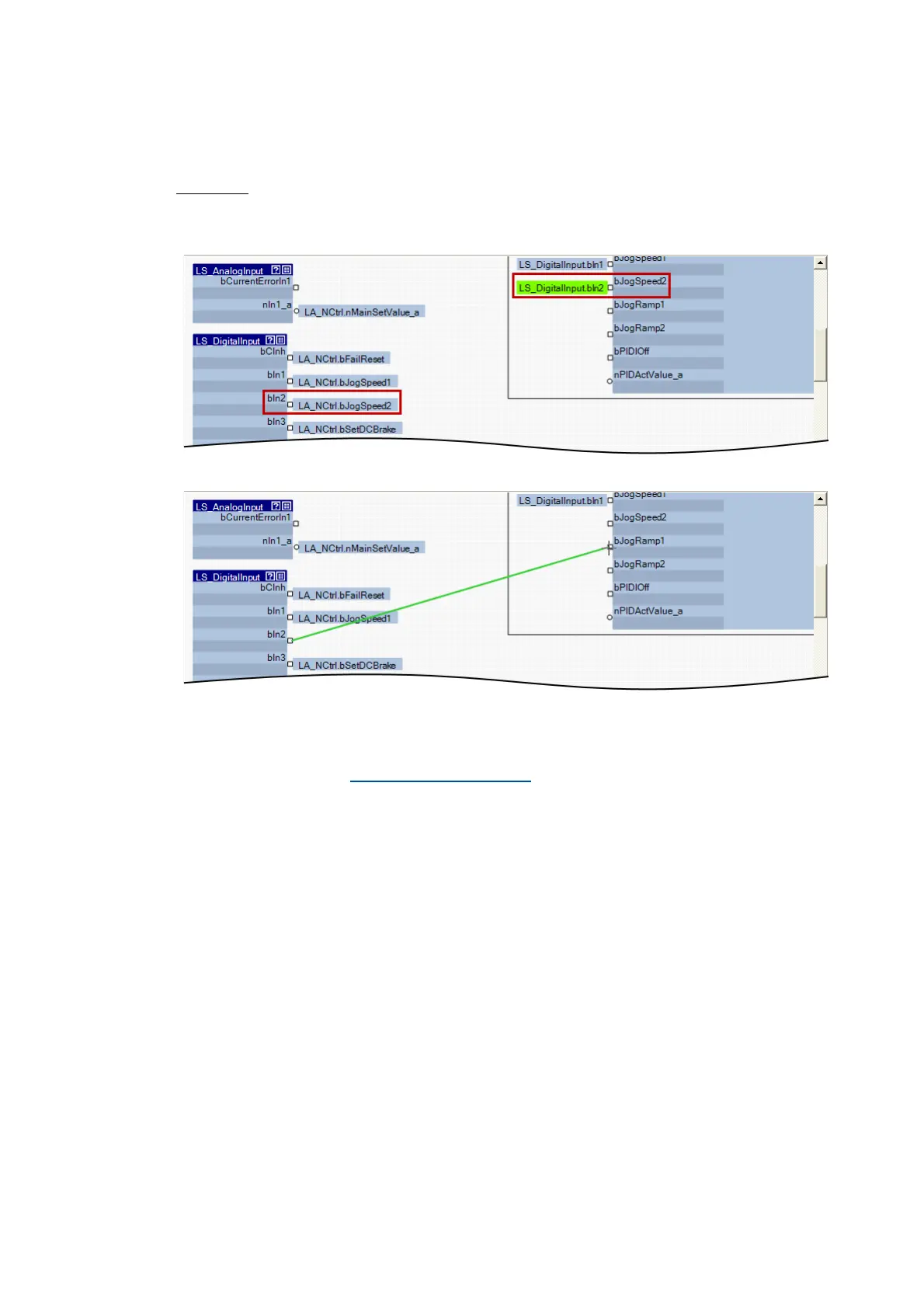 3. Establish a new interconnection from LS_DigitalInput.bIn2 to LA_NCtrl.bJogRamp1:
