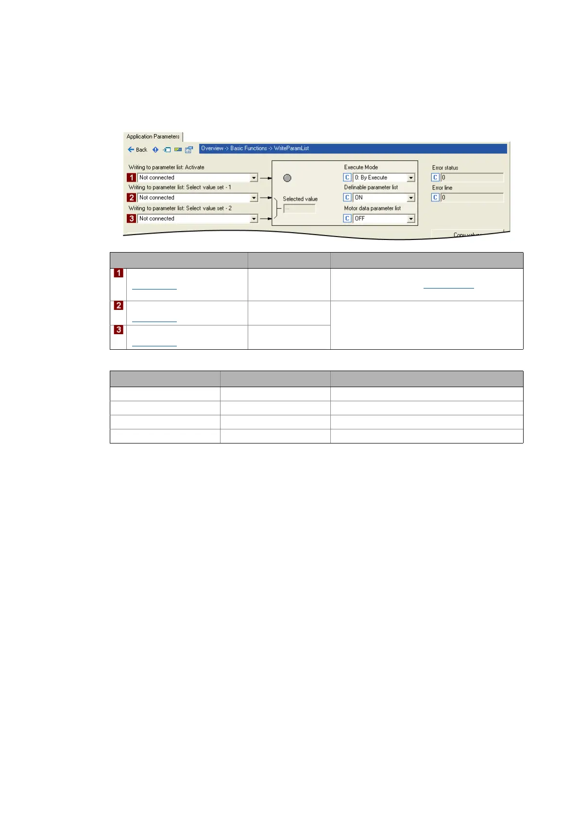 The three control inputs for parameter change-over can be configured via the following parameters: