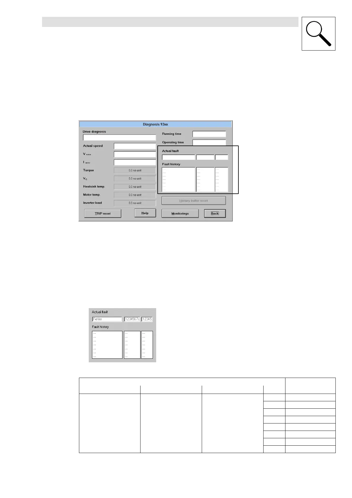 • The fields under ”Actual fault” show memory unit 1. It contains information on the active fault.