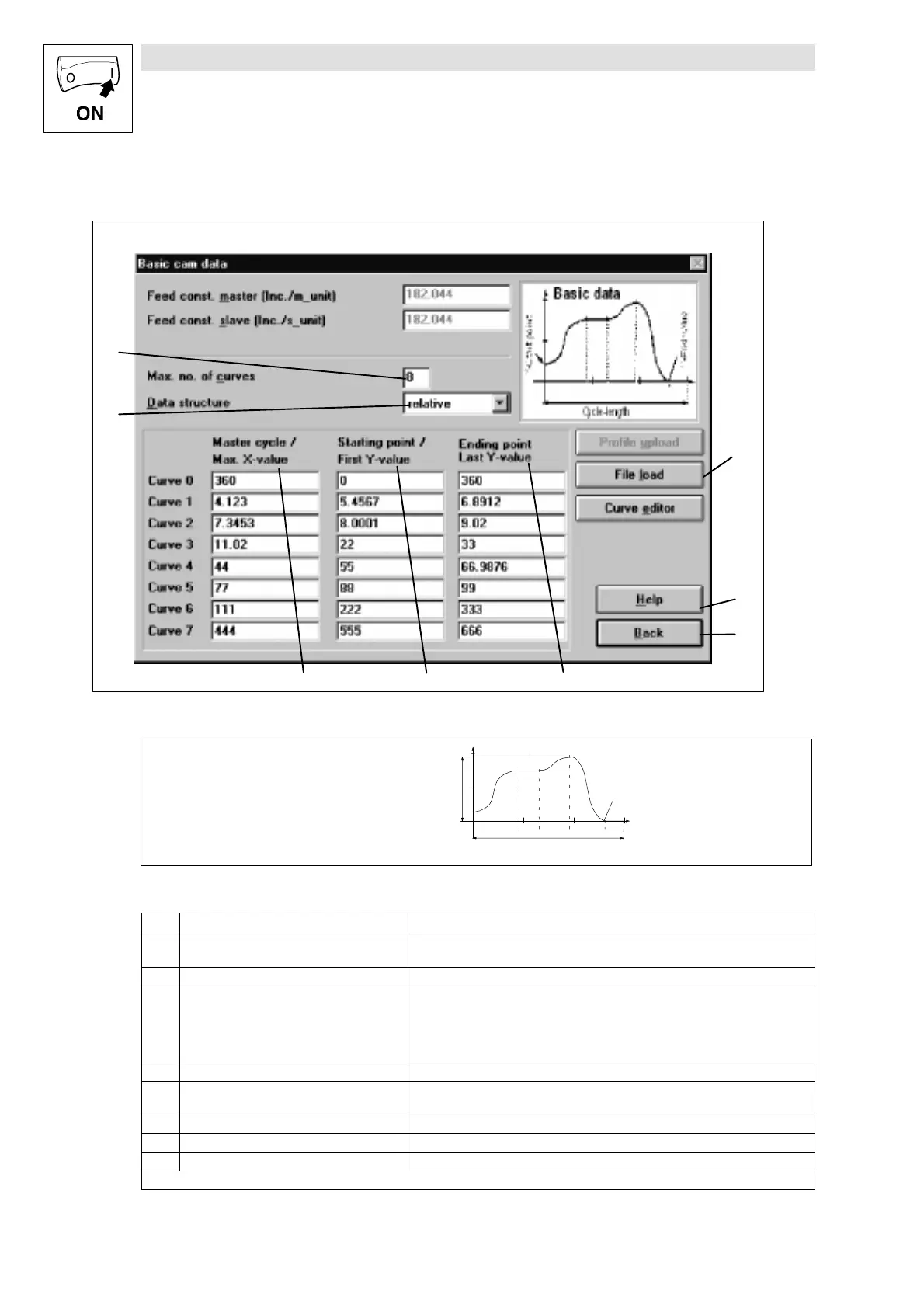 Fig. 5-4 Display - basic cam data