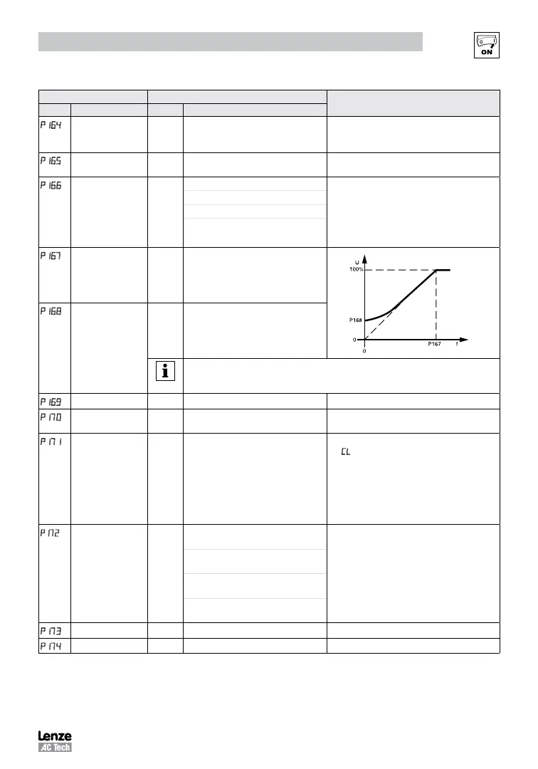 Slip Compensation 0.0 0.0 {%} 40.0 Increase P170 until the motor speed no longer
