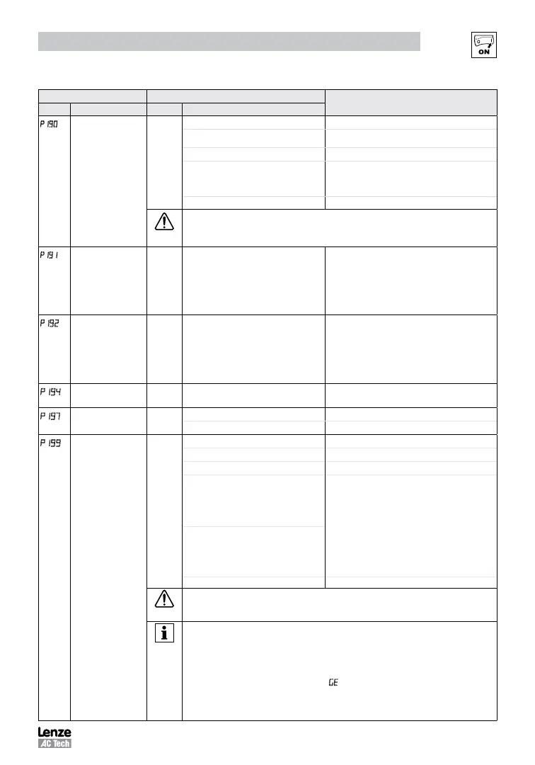 Active when P190 > 0 and P192 > 0.0, Drive is