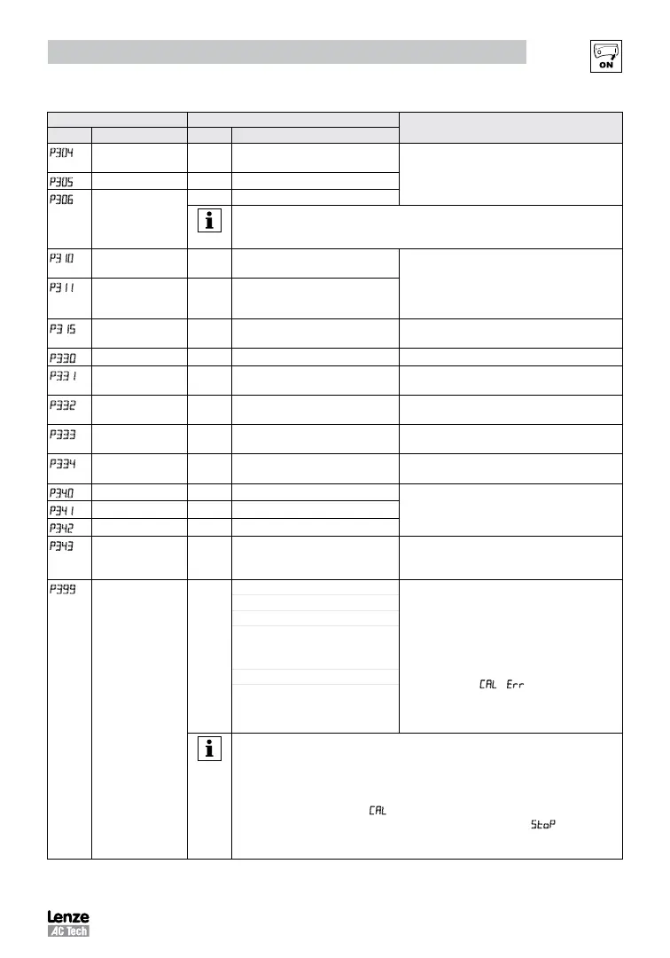 0 0 Calibration Not Done • If P300 = 4 or 5, motor calibration must be