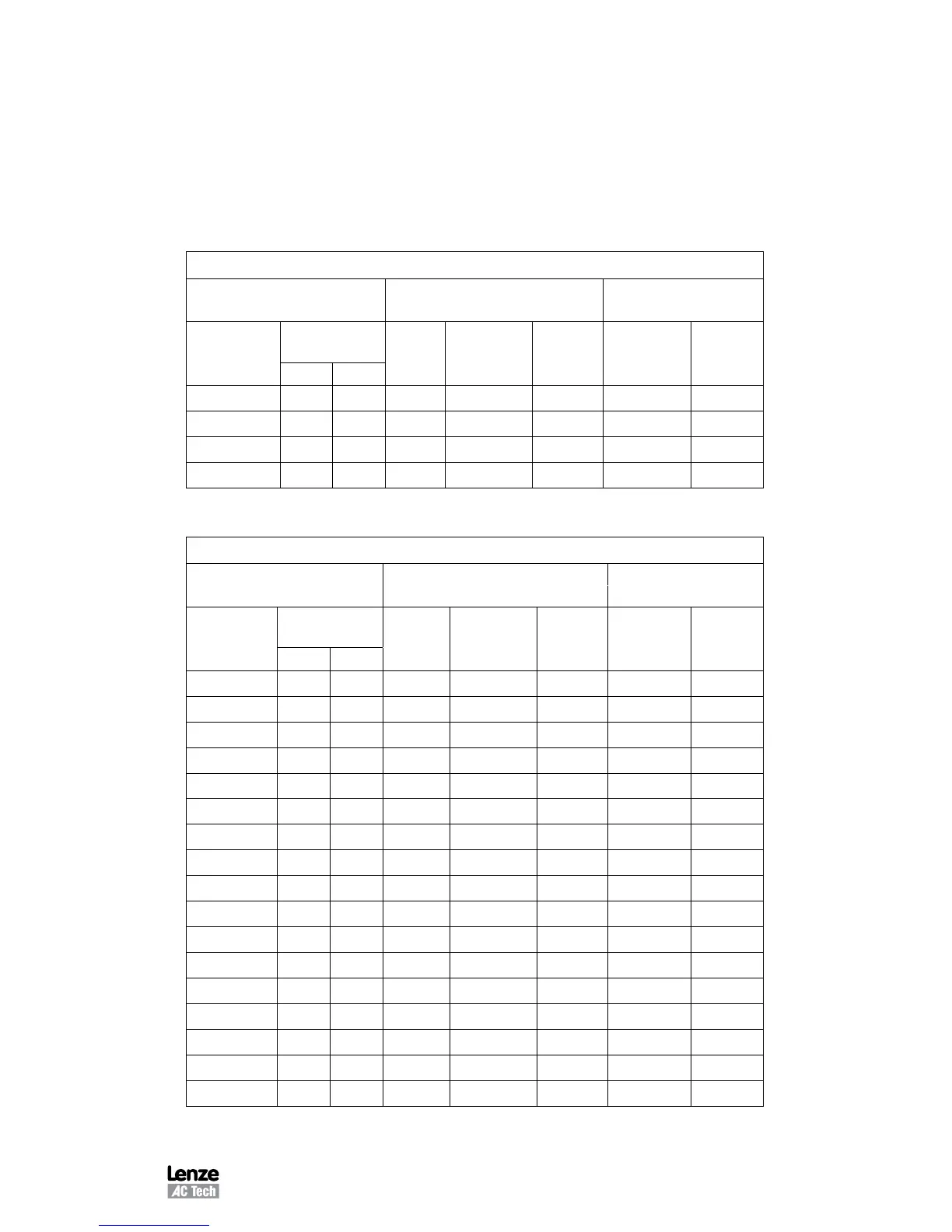 The following tables indicate the input and output ratings of the MC3000 Series drive.