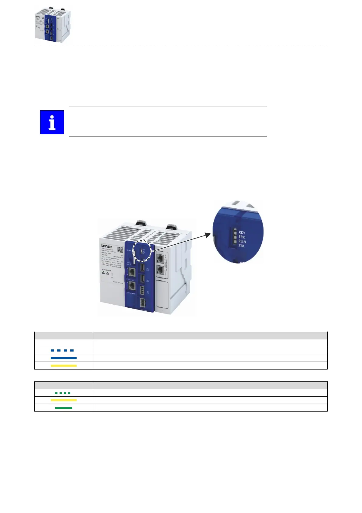 "RUN" LED (yellow/green) Meaning