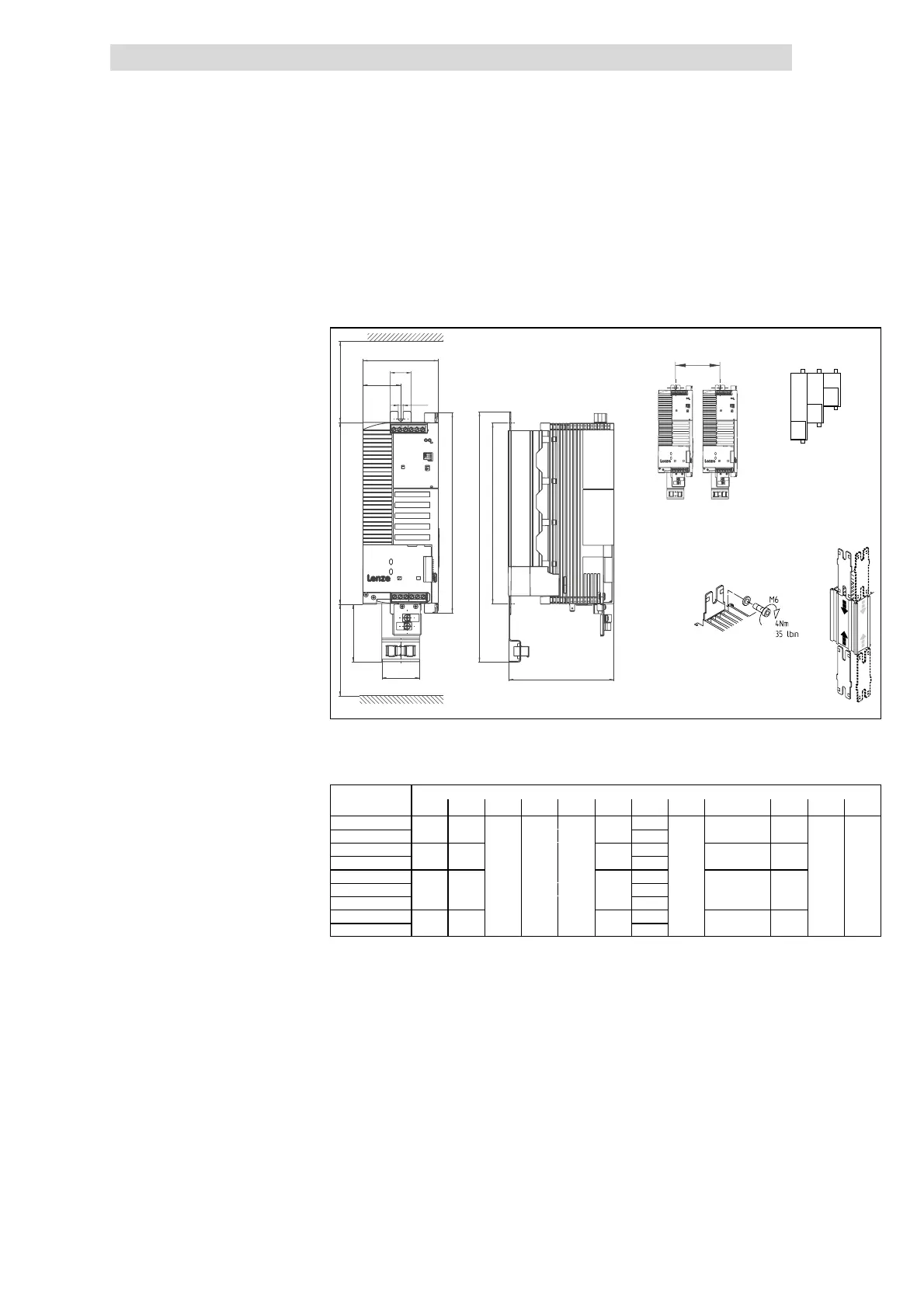 Lenze E82EV113K4C - Fig. 5.4-1 Standard Mounting with Fixing Rails 3; Mounting with Fixing Rails (Standard)