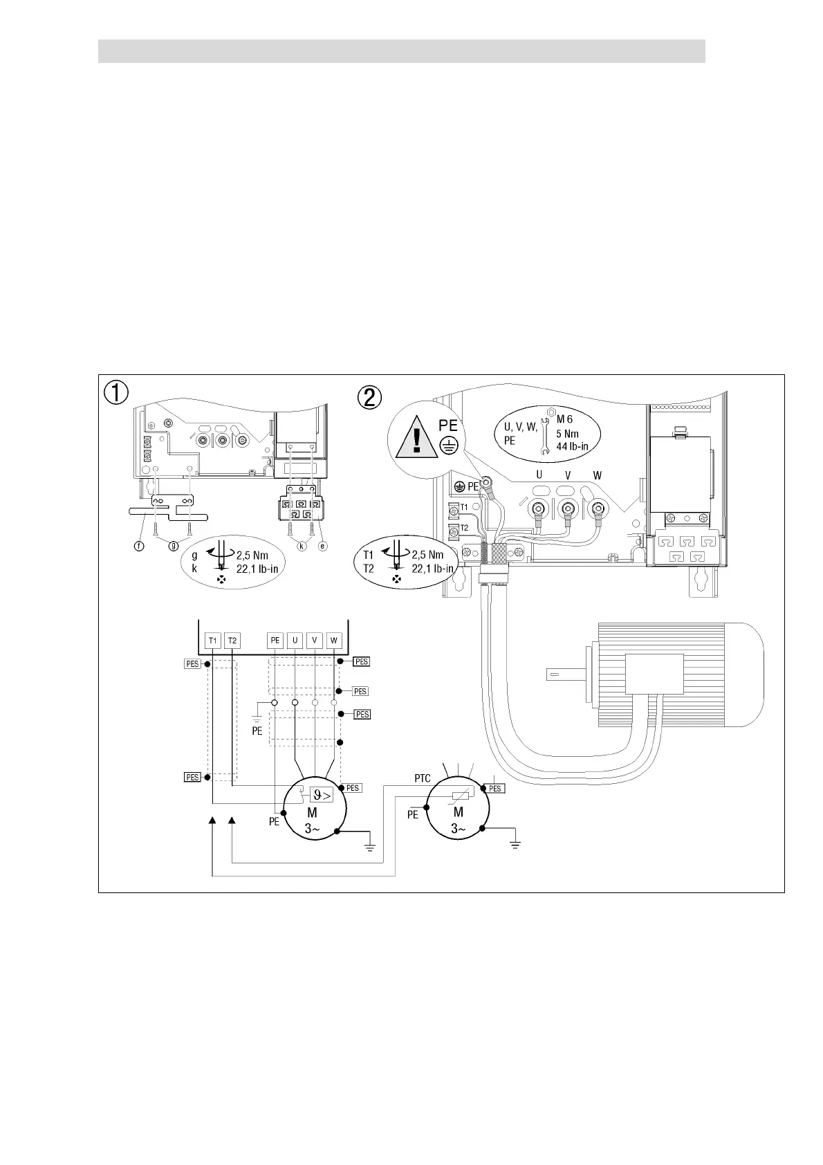 T1, T2 Connection terminals of motor temperature monitoring with PTC